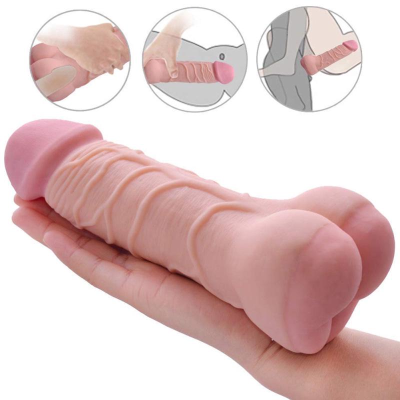 Double Function Realistic Dildo: Mini Ass Anal design for Male Masturbator + Hollow Penis Sleeve for Men's Dick for Women, Soft and flexible skin