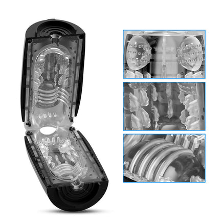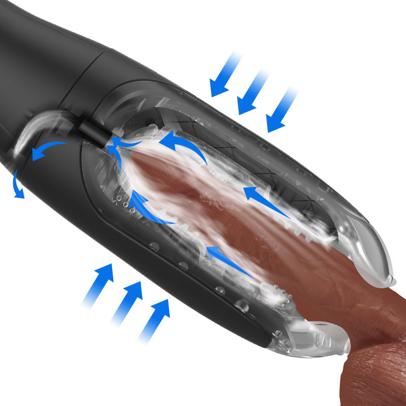 This is a brand new masturbation cup that should not to be missed. When you have applied the lubricant and are ready to start this adventure, just take a deep breath! And you can see yourself slowly inserting through the crystal silicone, while feeling the raised ridges, balls and strips passing by, massaging your glans or penis. Next when you turn on the vibration mode, you can feel the different vibration positions and waves of the two motors, and you want to groan uncontrollably. Press the suction button, which will make your brain go blank! The penis is constantly being squeezed and suction, as if a real female mouth is sucking it, out of control! Orgasm soon!
