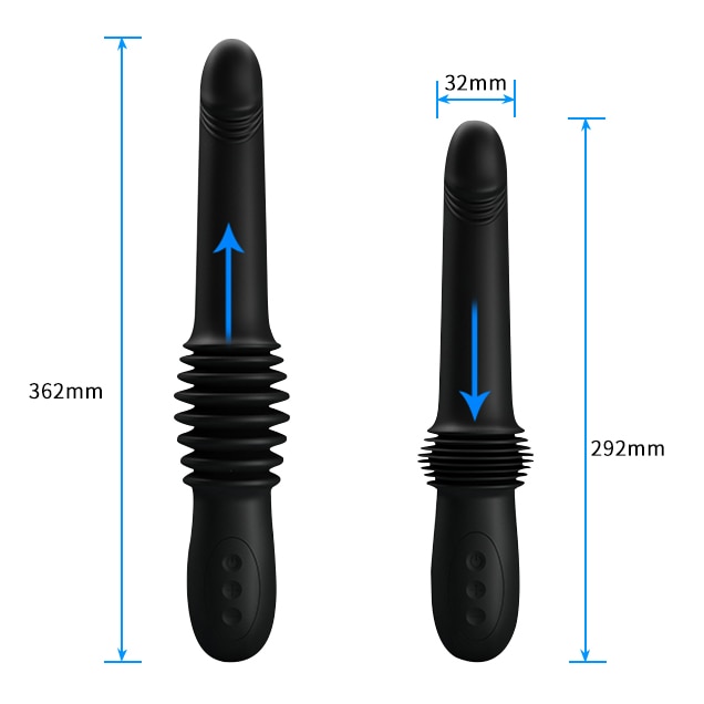 The 3 Speeds Telescopic Vagina G Spot Vibrator Thruster not only pulsates but also vibrates. Vibration and pulsation are controlled by separate buttons, and you can start copulation movements separately or both functions at the same time.